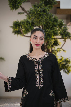 Noir features a long shirt silhouette made from 100% cotton, detailed with handcrafted floral embroidery. Timeless and understated, this piece balances craftsmanship with everyday elegance, making it a versatile addition to any wardrobe.